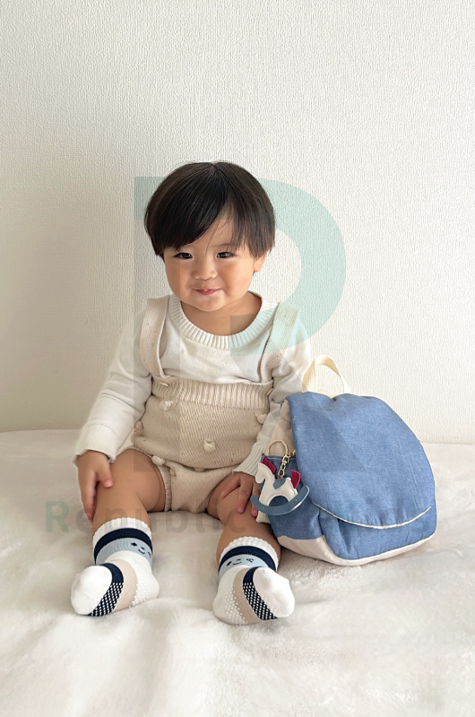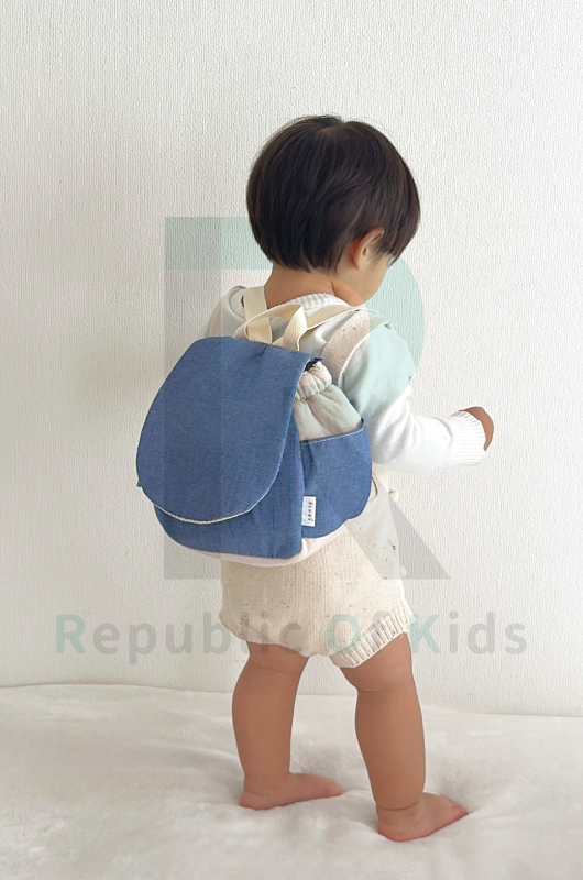 ダンガリー生地のベビーリュックのモデル画像を追加しました!