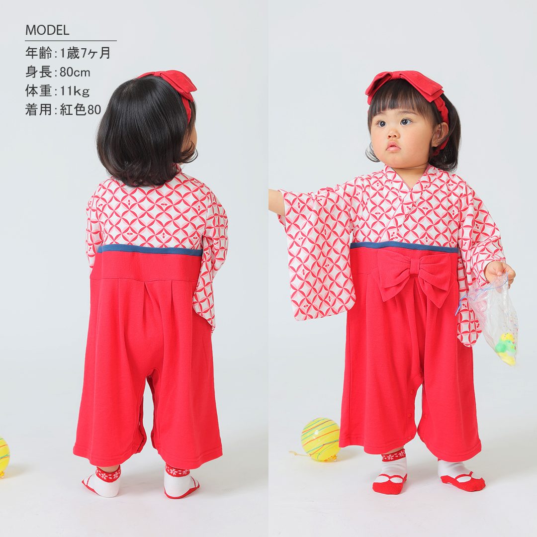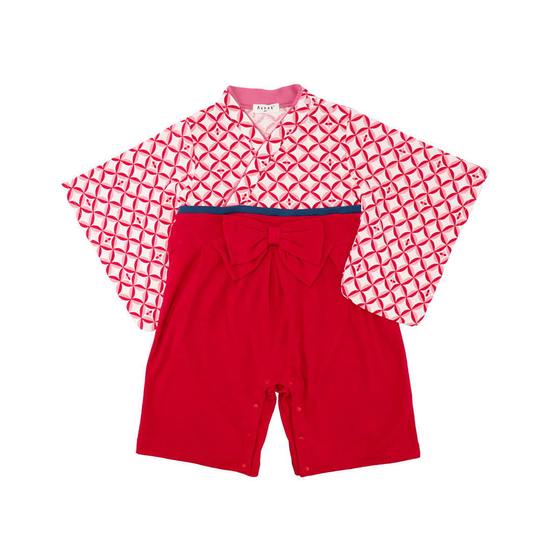 七宝柄女児袴ロンパース [75008A]